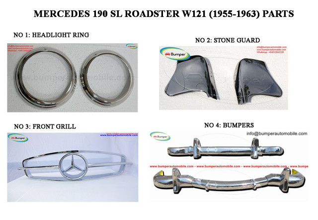 Mercedes 190 SL Roadster W121 (1955-1963) bumper, grill, stone guard, headlight ring